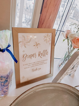 As you continued through the long hallway the Welcome table was set up to drop your diapers, enter the raffle, learn about the pacifier hunt, and see what the hashtag for the shower was.